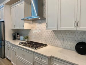 17 backsplash Viviano Marmo Nova Dolomite polished marble mosaic brass dots bexley land o lakes odessa ceramictec